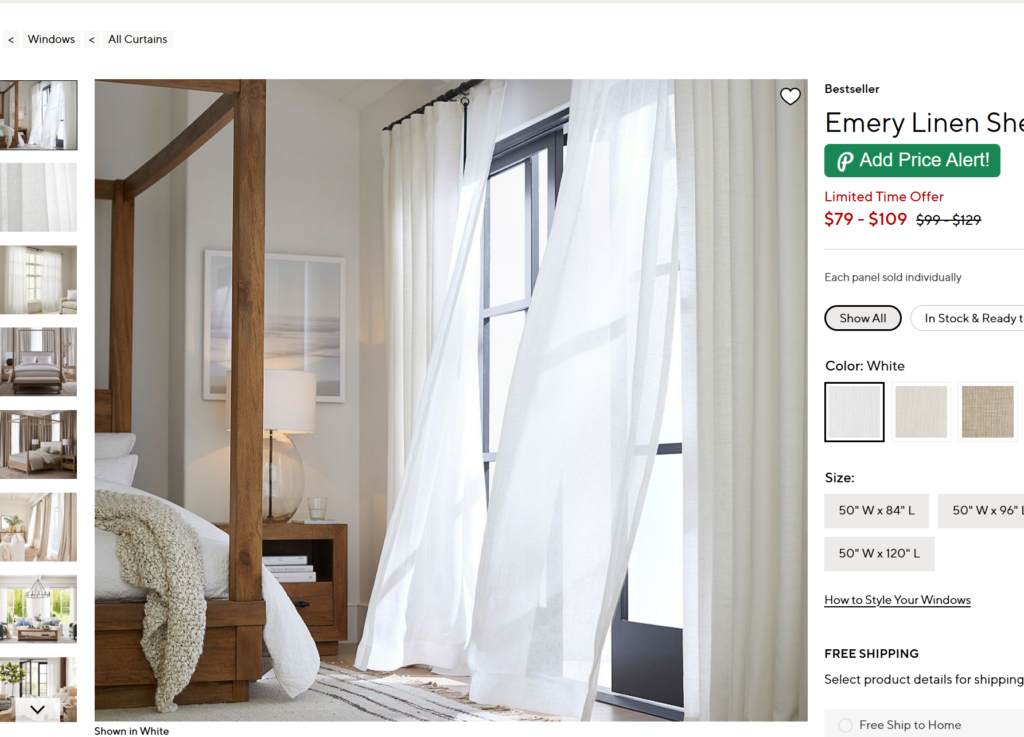 I added the price drop alert to all the 4 different colors of the dresser – walnut, white, black, and chester brown, which created 4 different price alerts, because I noticed on Wayfair the dresser could be $20-$30 cheaper just depending on the color alone.
